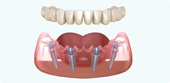 Для начала давайте разберёмся, что такое метод на 4-х имплантах и как выглядит данная конструкция.