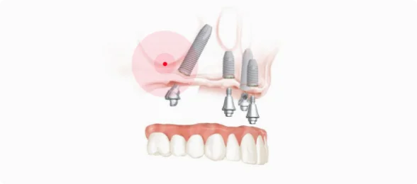 Импланты устанавливаются в области 5-го зуба под углом, что позволяет избежать дорогостоящей операции по наращиванию костной ткани.